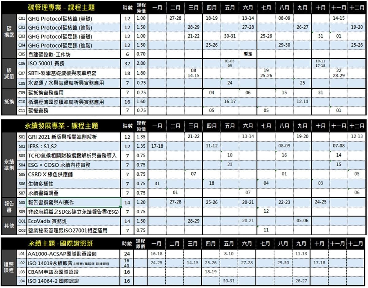 涵蓋:GHG Protocol.SBTi.循環經濟.碳權.IFRS.盡職調查
