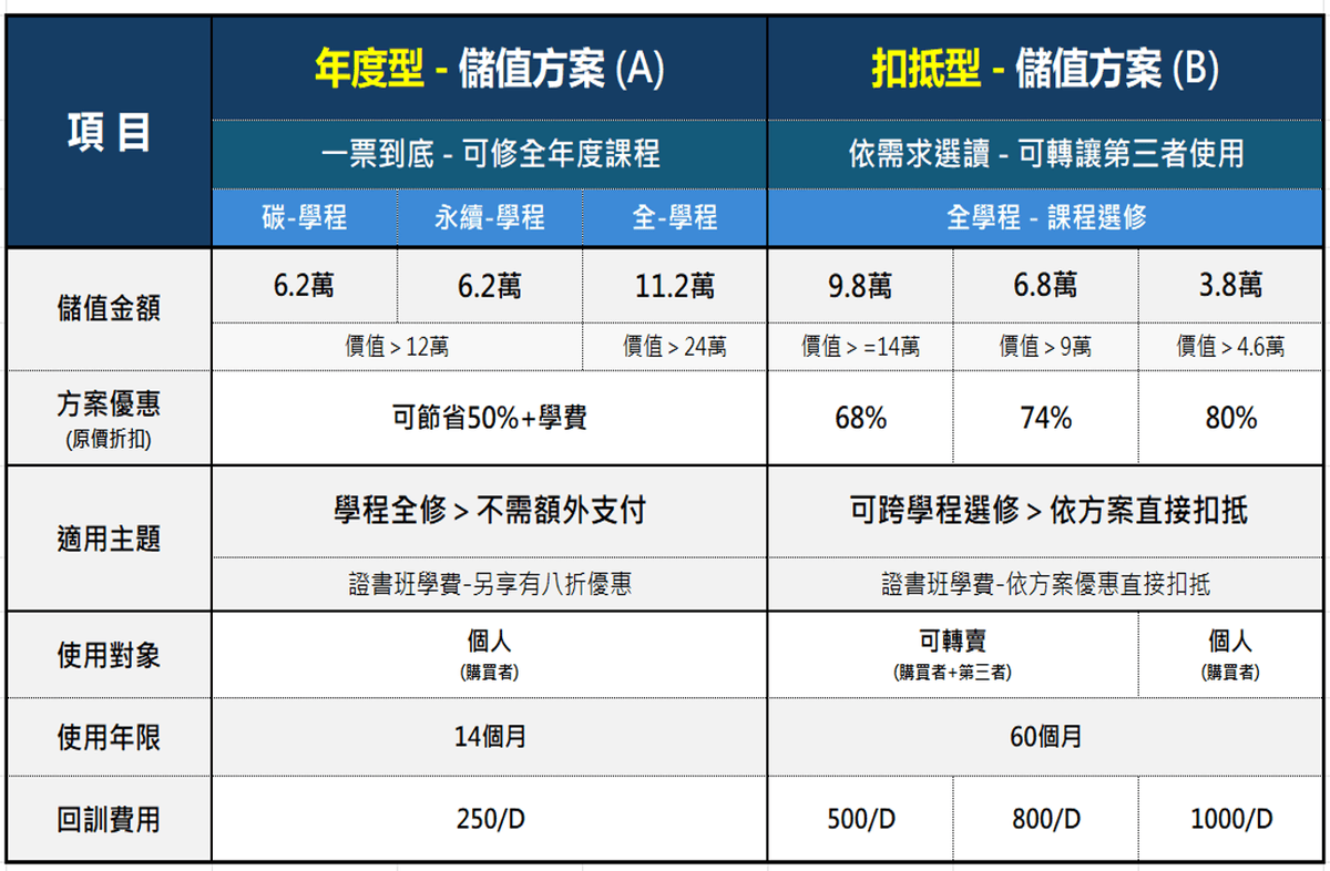 一票到底,可修全年度課程及可持續回訓,修課越多賺越多-最多節省50+%學費