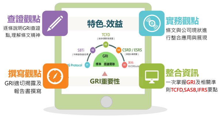●GRI 主題準則解析-200、300、400系列解析與應用說明: